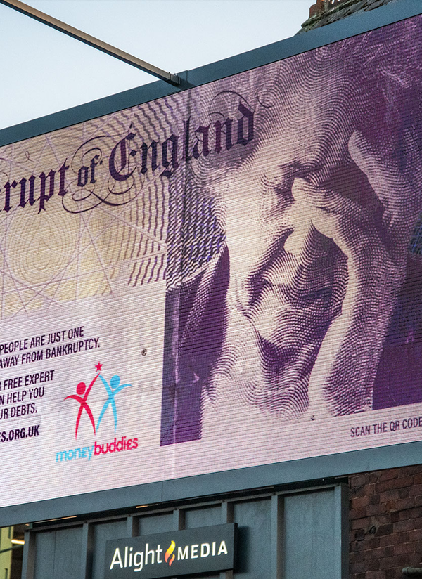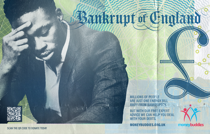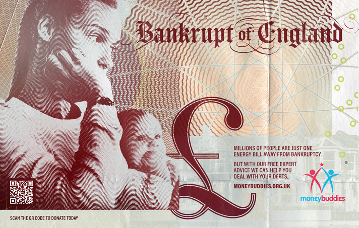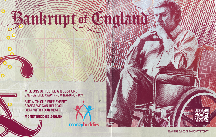 These banknote-style posters replace the usual famous faces with those who are being hit the hardest. Each poster also features a QR code which users can scan to donate to debt charity Money Buddies.