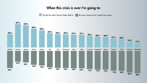 As countries begin to establish new plans to recover from coronavirus, people all around the world are reminiscing at how life used to be prior to the pandemic. 1 in 4 people globally say they took their life for granted before (rising to 60% in Japan and 65% in China). However, we’re also a witnessing a strong spirit of optimism and positivity towards what the future will hold. 41% of people globally say they’re grateful for the good in their lives right now, suggesting that in this period of self-reflection, our attitudes and priorities in life have been reconsidered. And 1 in 6 people globally say they’ve even discovered a better version of themselves during the pandemic, a testament to our human resilience and adaptability in times of crisis. So even though we may never be the same again, there is clearly a large contingent who sees that as an opportunity for the world to change for the better.
